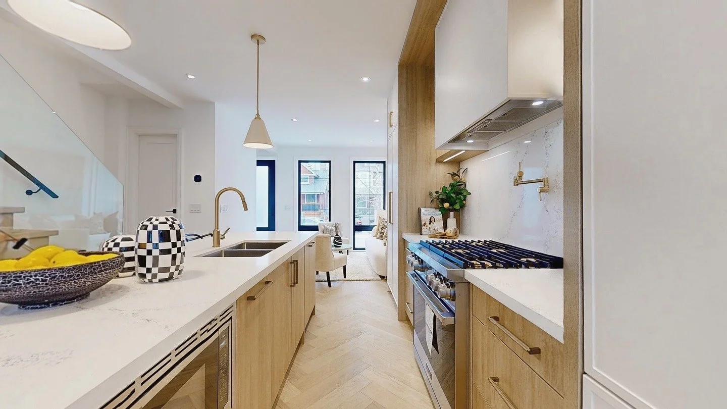 Experience sophistication in our thoughtfully designed residences, inspired by the charm of France. Our homes seamlessly blend classic allure with transitional design, offering spacious living areas adorned with intricate details and dedicated to exquisite style. This refined home features ample, well-designed closet space, perfect for those with refined tastes. Each area of the house creates a peaceful atmosphere, effortlessly combining classic living with the convenience of modern comfort. Step outside and unwind on the rooftop deck, adding an extra touch of luxury to your living experience. Moreover, revel in the added perk of this prime location, as the house is situated in the heart of Queen Street, within walking distance of Woodbine Beach. Check the pictures of this seamlessly designed space where timeless spirit is present in every corner. This residence surpasses expectations, inviting you to savor the beauty of comfortable living.”